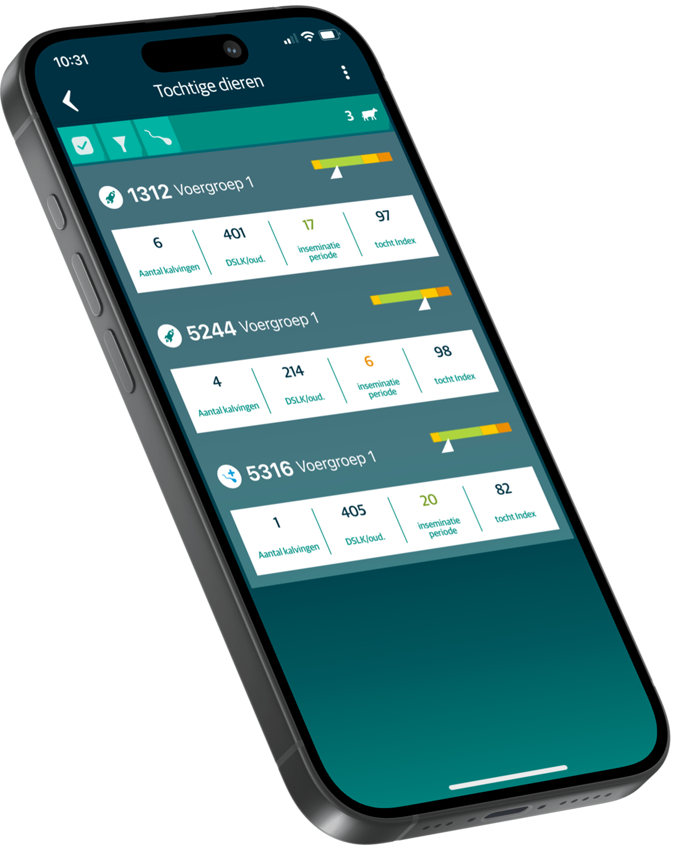 Deze inzichten helpen u een nauwere band met uw dieren te krijgen om optimale tochtmomenten te identificeren en gezondheidsproblemen snel op te sporen.